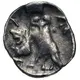 | Описание реверса | Owl standing left, head facing; above, olive-spray; in left field, lion’s head left; all within shallow incuse square. |