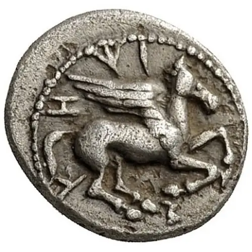 | Descrizione del rovescio | Palm tree enclosed within a linear square bordered by dots. All within shallow incuse square |