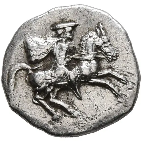 | Obverse description | Horseman riding to right, wearing petasos and cloak. |