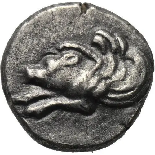 | Opis awersu | Forepart of winged boar left. |