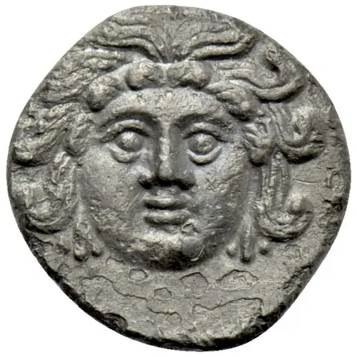 | Obverse description | Female head (Arethusa?) facing, wearing triple-pendant earrings. |