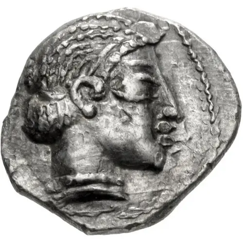 | Описание аверса | Bare head of male right, with eastern hairstyle. |