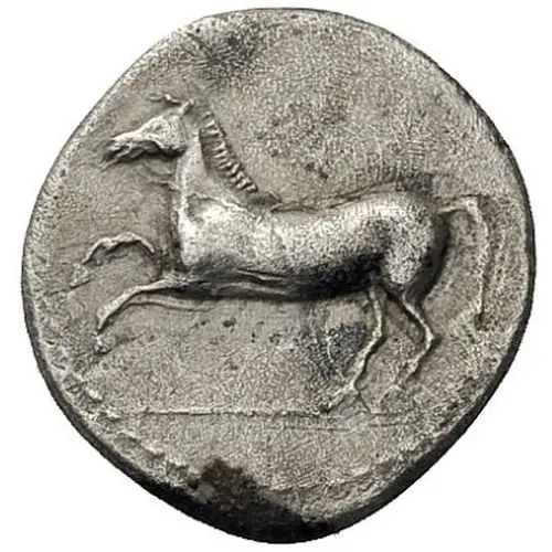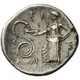 | Reverse description | Nymph (Hygieia) standing left. wearing long robes with her cloak over her head, her left hand at her waist and her right extended to left, holding a phiale with which she feeds a serpent to her left, coiled to right |