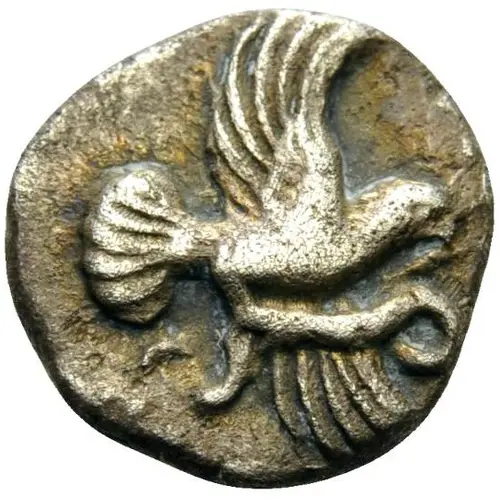 | Reverse description | Thunderbolt with wings below and volutes above |