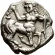 | Obverse description | Bearded centaur in the ‘running-kneeling’ posture to right, his head turned back to left to look at a kantharos held in his right hand |