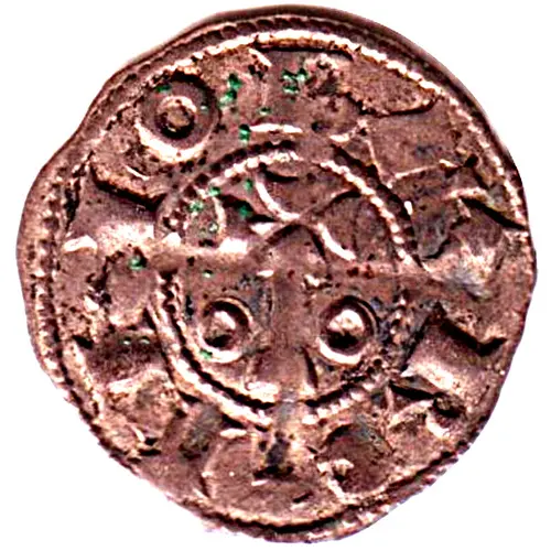 | Obverse description | Cross placed on a pole between two annulets. Legend around, between beaded circles. |