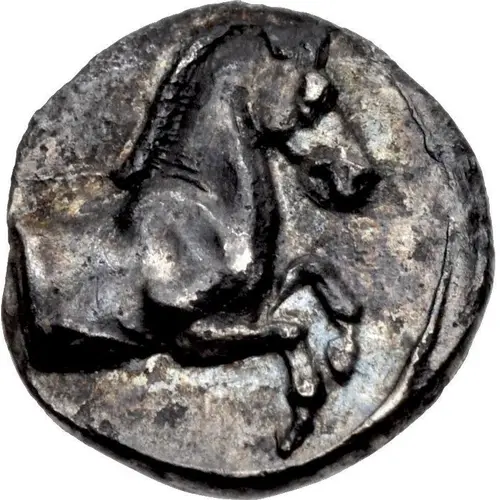 | Reversbeschreibung | Forepart of boar right; A-P-X to right; all within incuse square. |