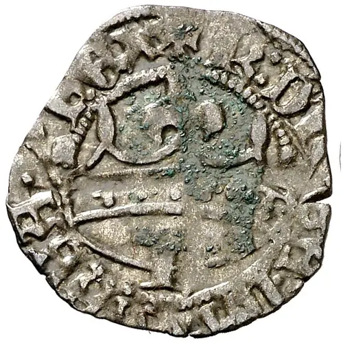 | Reverse description | Cross fleurdelisée cutting legend with lilies in quarters. |