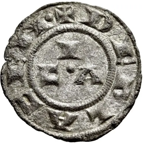 | Reverse description | Ruler`s name in three lines in center, within beaded circle. |