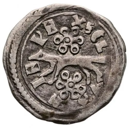 Obverse description Marten running left, rosettes above and under; no pearl circle