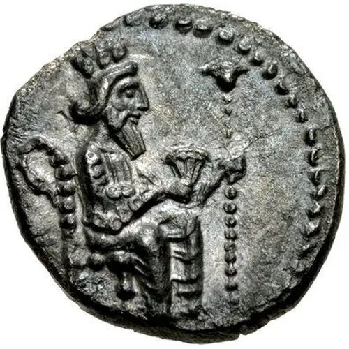 | Obverse description | Crowned figure of Artaxerxes III in the guise of Baaltars seated right, holding lotus flower in right hand, lotus-tipped scepter in left. |