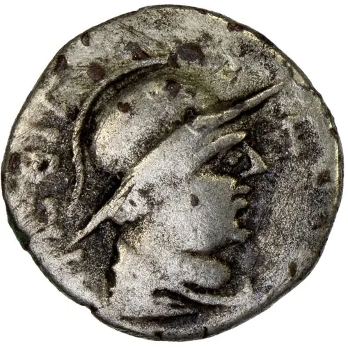 | Obverse description | Helmeted and draped bust right, imitating Bactrian issues of Eukritades. |