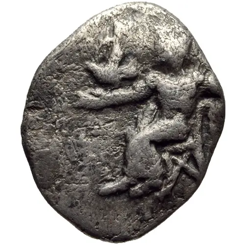 Historical Context: This silver obol, dated 465-460 BC, originates from Tegea, a significant city-state within the Arcadian League in the Peloponnese. This early Classical period followed the Persian Wars, marked by shifting power dynamics and inter-polis rivalries. Tegea, strategically vital, often navigated a complex, sometimes independent, relationship with Sparta. The minting of this small denomination coinage by Tegea highlights its economic activity and civic autonomy within the Arcadian confederation, essential for local commerce.