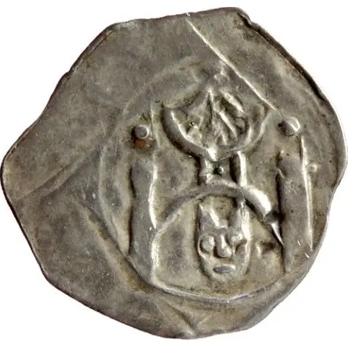| توضیحات روی سکه | Bishop`s head in a church portal with two side towers topped by spheres and a soaring central tower with a widely fanned spire. Circular outline around the outside. |