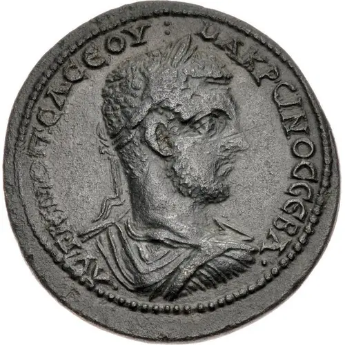 AY·T· K · M · OΠЄΛ · CЄOY MAKPCINOC CЄBA · (Translation: The emperor caesar Marcus Opellius Severus Macrinus august) |