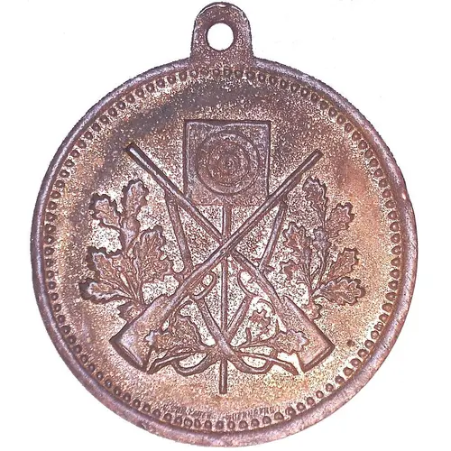 | Obverse description | Two crossed rifles with a target in the background |