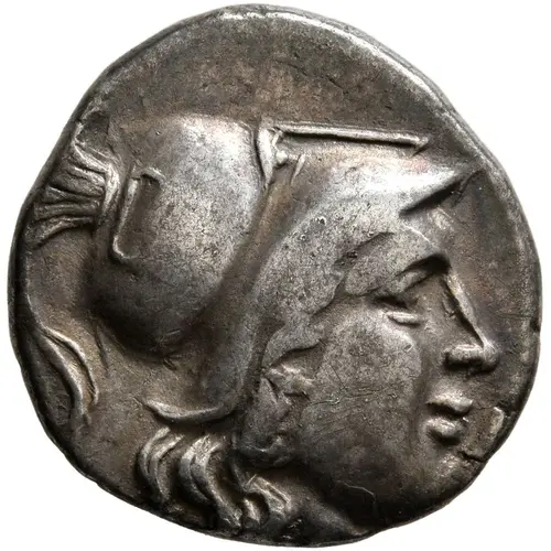 | Obverse description | Head of Athena to right, wearing crested Corinthian helmet. |
