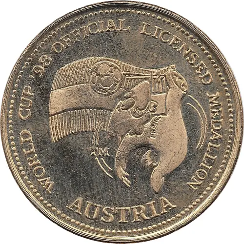 | Obverse lettering | WORLD CUP `98 OFFICIAL LICENSED MEDALLION TM AUSTRIA |