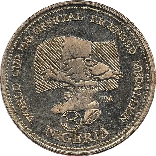 | Opis líce | WORLD CUP `98 OFFICIAL LICENSED MEDALLION TM NIGERIA |
