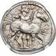 | Description de l’avers | Bridled horse prancing right, on his far side nude warrior `Ares` standing right, shoulders facing, wearing causia and holding two spears horizontally. |