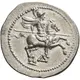 | Obverse description | Armored cavalryman, wearing helmet, holding couched lance in his right hand and with his cloak flowing back from his shoulders, riding horse prancing to right. Below horse, Δ |