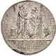 Helmeted Borussia giving her hand to the king wearing a toga, to the left an altar with a entwined snake, at the feet cornucopia and trophy of arms. |
