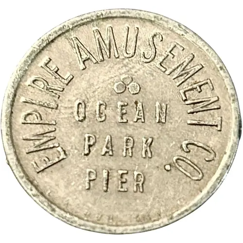 | Obverse lettering | EMPIRE AMUSEMENT CO. ஃ OCEAN PARK PIER L. A. RUB. STP. CO. |