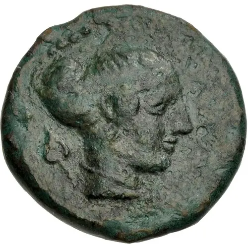 | Описание аверса | Head of Aigiste right, hair in sphendone; ivy leaf to left. |