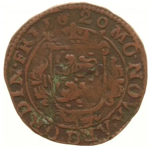 | 裏面の説明 | Frisian farmer with sword on shoulder between F - O (Frisiae Ordines) in inner circle. |