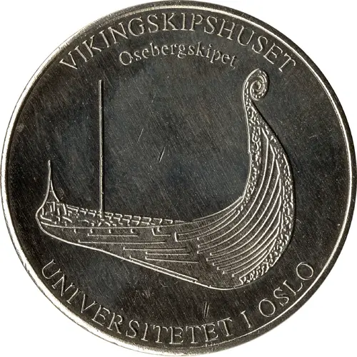 | Obverse lettering | VIKINGSKIPSHUSET Osebergskipet UNIVERSITETET I OSLO (Translation: Viking ship Oseberg ship University of Oslo) |