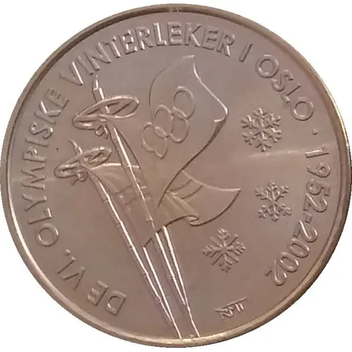 | Obverse lettering | DE VI. OLYMPISKE VINTERLEKER I OSLO • 1952-2002 (Translation: THE 6TH OLYMPIC WINTER GAMES IN OSLO • 1952-2002) |