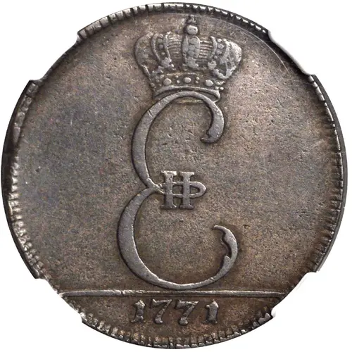 | Obverse description | Crowned monogram of Empress Ekaterina II. Date. |