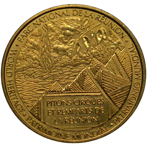 | Obverse lettering | PARC NATIONAL DE LA REUNION PITON CIRQUES ET REMPARTS DE LA REUNION WORLD HERITAGE PATRIMOINE MONDIAL PATRIMONIO MUNDIAL |