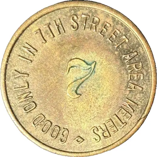| Obverse lettering | GOOD ONLY IN 7TH STREET AREA METERS ⬦ 7 |