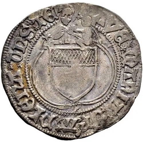 | Obverse description | Arms in trefoil, Madonna and child above. |