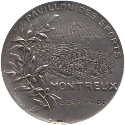 | Obverse lettering | PAVILLON DES SPORTS MONTREUX L.BURKARDT Huguenin 0.900 |