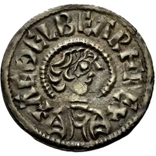 + ΛEÐELBEΛRHT REX (Translation: King Aethelberht.) |