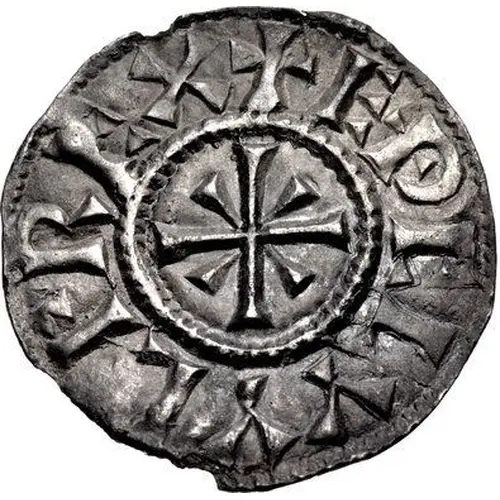| Obverse description | Legend around cross pattée with wedges in angles. |
