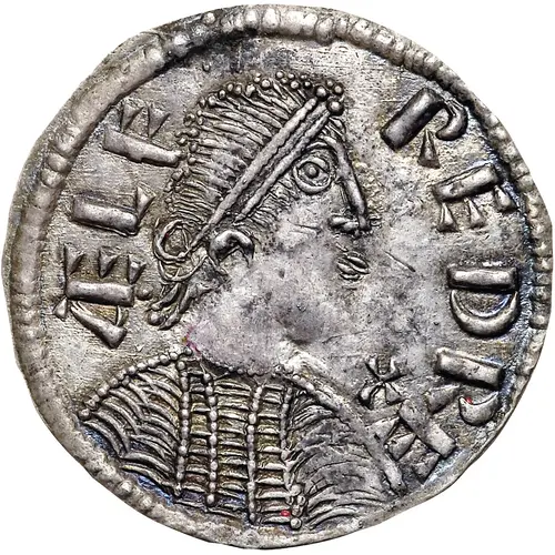 | Arka yüz açıklaması | LONDONIA monogram, cross of wedges above, cross of pellets below. |