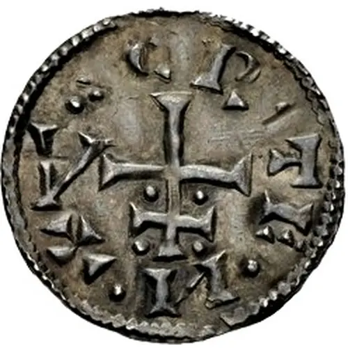 | Obverse description | Inverted patriarchal cross, C N V T at end of limbs, R E X in angles. |