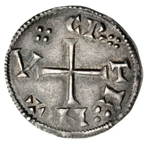 | Reverse description | Short cross pattée with pellets in each quarter within inner circle, legend around. |