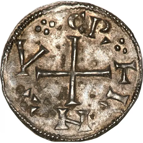 Obverse description Long cross pattée, C N V T at end of limbs, R E X in angles.
