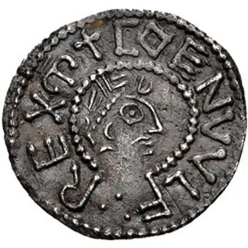 + C◊ENVVLF :· REX m (Translation: Coenwulf King of Mercia.) |