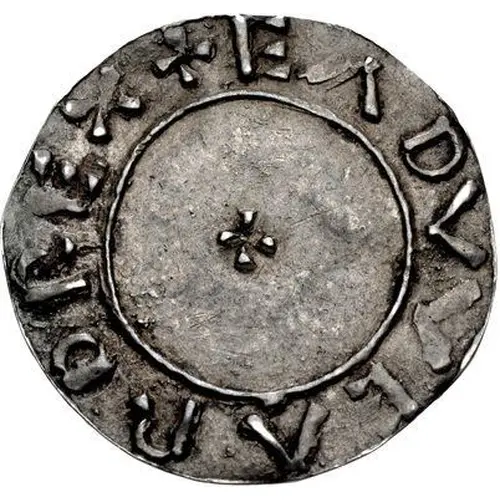 | Reverse description | Minster (Saxon church) on ground line above inscription, small cross pattée below. |