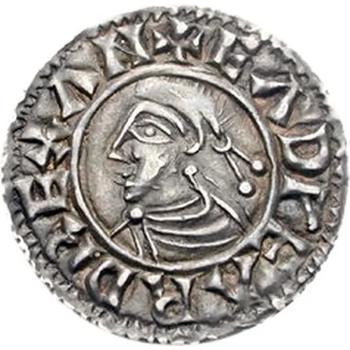 | Chữ khắc mặt sau | +EΛLDIC MONETA BEDΛ• (Translation: Baldic moneyer Bedford) |