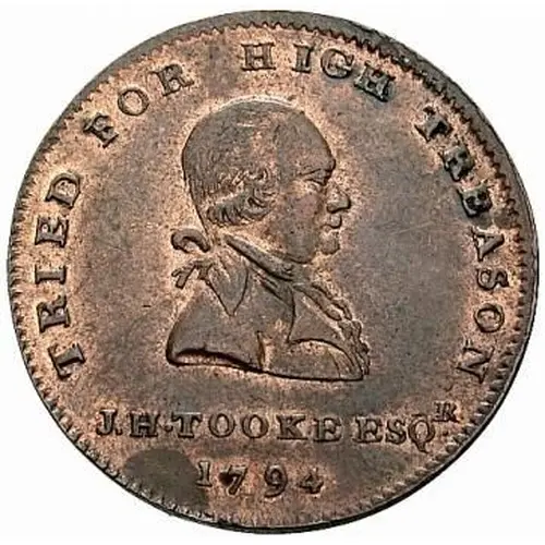 | Obverse lettering | TRIED FOR HIGH TREASON J. H. TOOKE ESQR. 1794 |