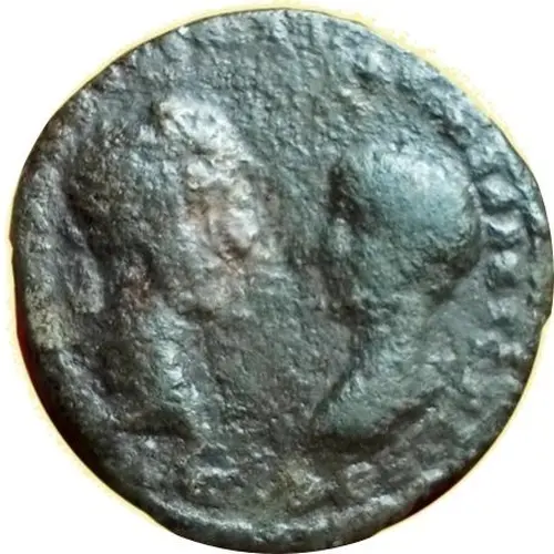 Confronted busts of Macrinus, laureate and Diadumenianus, bare-headed |