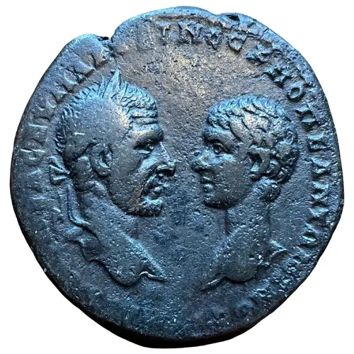 | Beschrijving voorzijde | Laureate head of of Macrinus right facing bare head of Diadumenian left. |