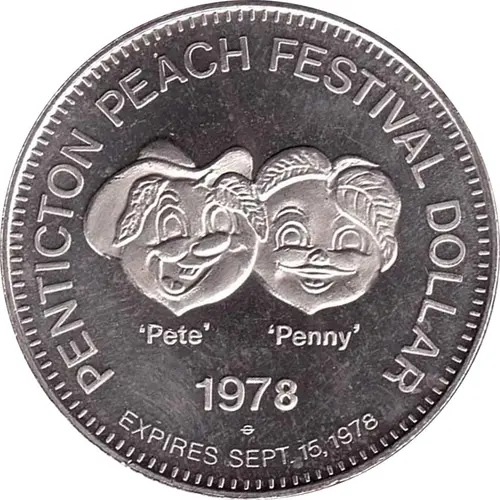 | Averslegende | PENTICTON PEACH FESTIVAL DOLLAR `Pete` `Penny` 1978 EXPIRES SEPT. 15, 1978 |