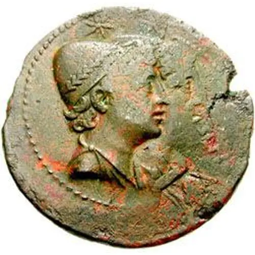 | توضیحات روی سکه | Jugate draped busts of the Dioskouroi right; above two stars. |